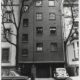 vom Neubau des Deutsche Bank-Hochhauses aus gesehen Rückseitenbeschriftung von Hand der Fotografin: „Niedenau, Ecke Kettenhofweg, April, 1982“