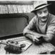 • Eine Frau in einer Wohnwagensiedlung der Sinti und Roma bei Köln zeigt ihre Verkaufsware, Mai 1971