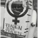Als öffentliche Aktion gegen den deutschen § 218 organisieren die Frauen des Frankfurter Frauenzentrums eine gemeinsame Fahrt nach Holland, wo sie abtreiben dürfen. Rückseitenbeschriftung von anderer Hand: „Busfahrt nach Holland“