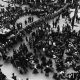 Rudi Arndt, Oberbürgermeister von Frankfurt, beobachtet neben einem Polizeifahrzeug stehend die Demonstration. (Scan vom Vintageprint)