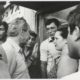 bei einer Pressekonferenz nach der Bombardierung des irakischen Leichtwasserreaktors Osirak Rückseitenbeschriftung von anderer Hand: „Menachem Begin“