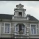 Drei Mädchen mit zu großen Schuhen, blaue Haustür (Aue 85)