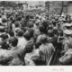 Angeklagte verstecken sich hinter der Anklageschrift. Der Prozess gegen 22 Angeklagte wegen Mordes und Beihilfe zum Mord im KZ Auschwitz wurde vom 20.12.1963 bis 19.08.1965 geführt Rückseitenbeschriftung von anderer Hand: „Auschwitz-Prozeß im Bürgerhaus Gallus/Angeklagte verstecken sich hinter der Anklageschrift, Frankfurt am Main 1964“