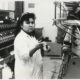 Rückseite von: Arbeiterin in der Spinnerei der Farbwerke Hoechst