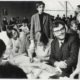 Stehend: Daniel Cohn-Bendit. Links in der Menge der hessische Kultusminister Ernst Schütte Rückseitenbeschriftung von anderer Hand: „Kultusminister Ernst Schütte (links), Daniel Cohn-Bendit (rechts); ‚Schütte-Teach-in‘ in der Mensa der Frankfurter Uni der AfE (Abteilung für Erziehungswissenschaft), 7. Januar 1969“
