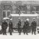 Im Hintergrund das Fernmeldehochhaus Rückseitenbeschriftung von Hand der Fotografin: „Die Zeitungen (Frankfurter Rundschau) werden abgepackt, im Hintergrund das Fernmeldehochhaus“