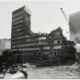 Aufschrift auf einem Transparent am Balkon: „Wir sollen am 28.2. raus! Wir bleiben drin!!“ Rückseitenbeschriftung von Hand der Fotografin: „Ffm, 1973, Haus Kettenhofweg“