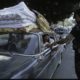 • Eine Frau in einer Wohnwagensiedlung der Sinti und Roma bei Köln zeigt ihre Verkaufsware, Mai 1971